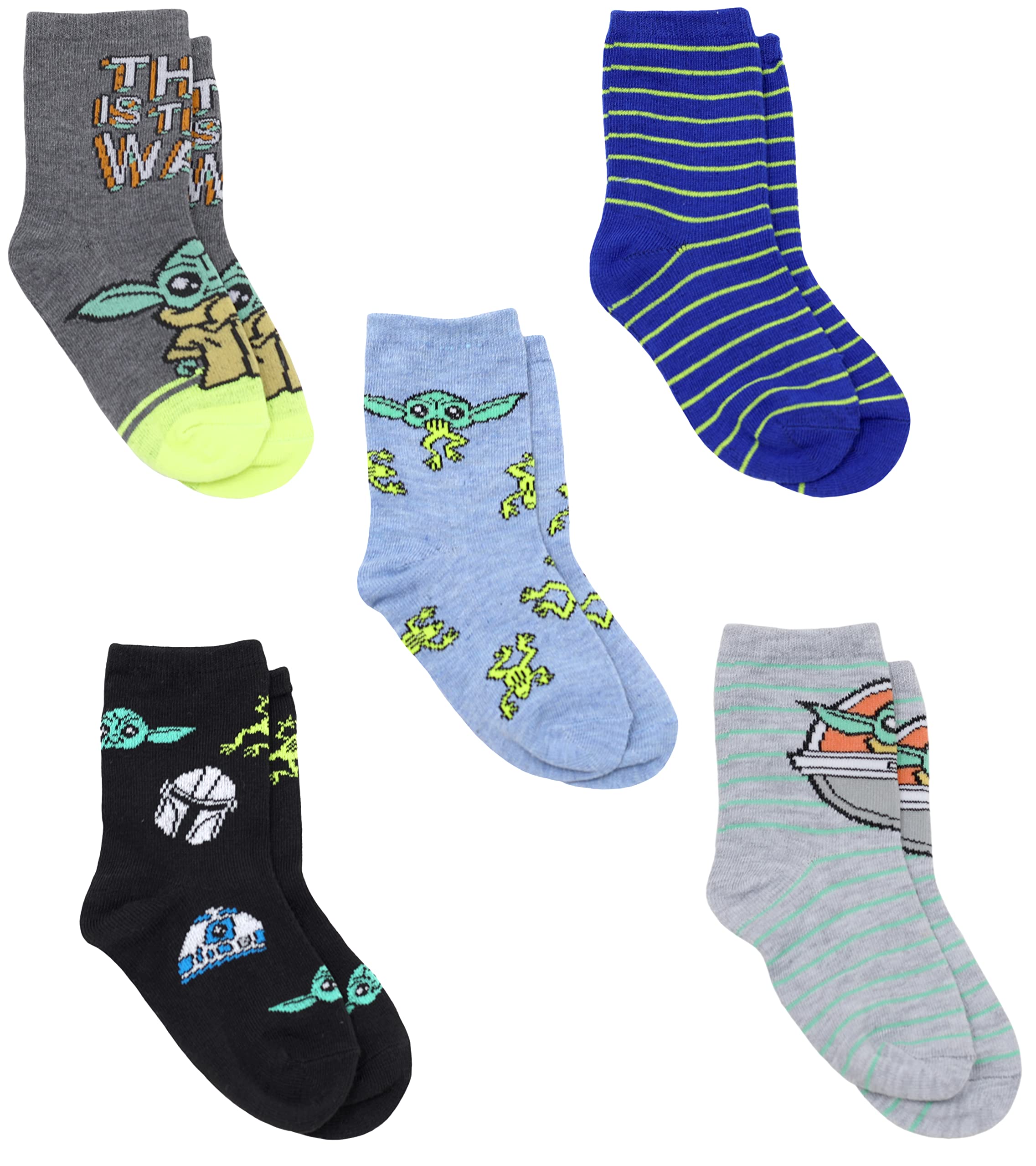 STAR WARS The Mandalorian Baby Yoda Novelty Crew Socks for Boys Multi Pack of 5, Grey, Medium